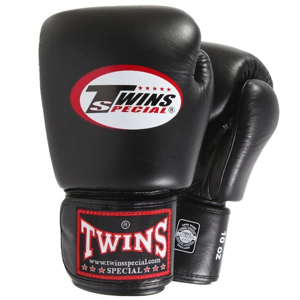 Twins special boxing gloves are some of the highest quality Muay Thai gloves in the world. Handcrafted in Thailand and made from high-quality cowhide leather they are reputed across the globe for their performance. The thick wrist support and padded thumb area help block kicks and elbows. A large hand compartment and thick padding allow a range of uses from varying sizes of the glove and the designs range from simple block colours to the excellent fancy print range. A triumph in Muay Thai glove design.