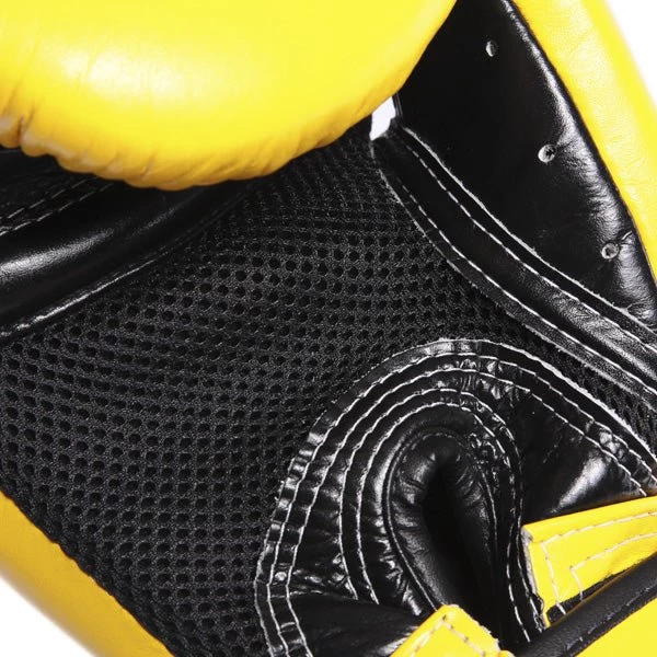 The Yellow Fairtex BGV1 Boxing gloves are patterned after the legendary Fairtex Pro Competition Gloves. Featuring full wrist wrap hook and loop closure and a tight wrist support these gloves have been designed with the fighter in mind.