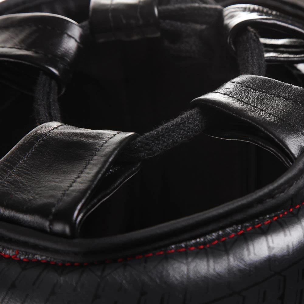 The Guvnor Face Saver Head Guard is the ultimate in head and facial protection and an item favoured by professional boxers and mixed martial artists world wide. This top of the line professional head gear is made of premium cowhide leather with a steel bar that eliminates nose fractures and contact with the mouth area. The inner part of the head guard is a suede-like lining with moisture wicking micro fibre technology combining excellent fit and comfort.