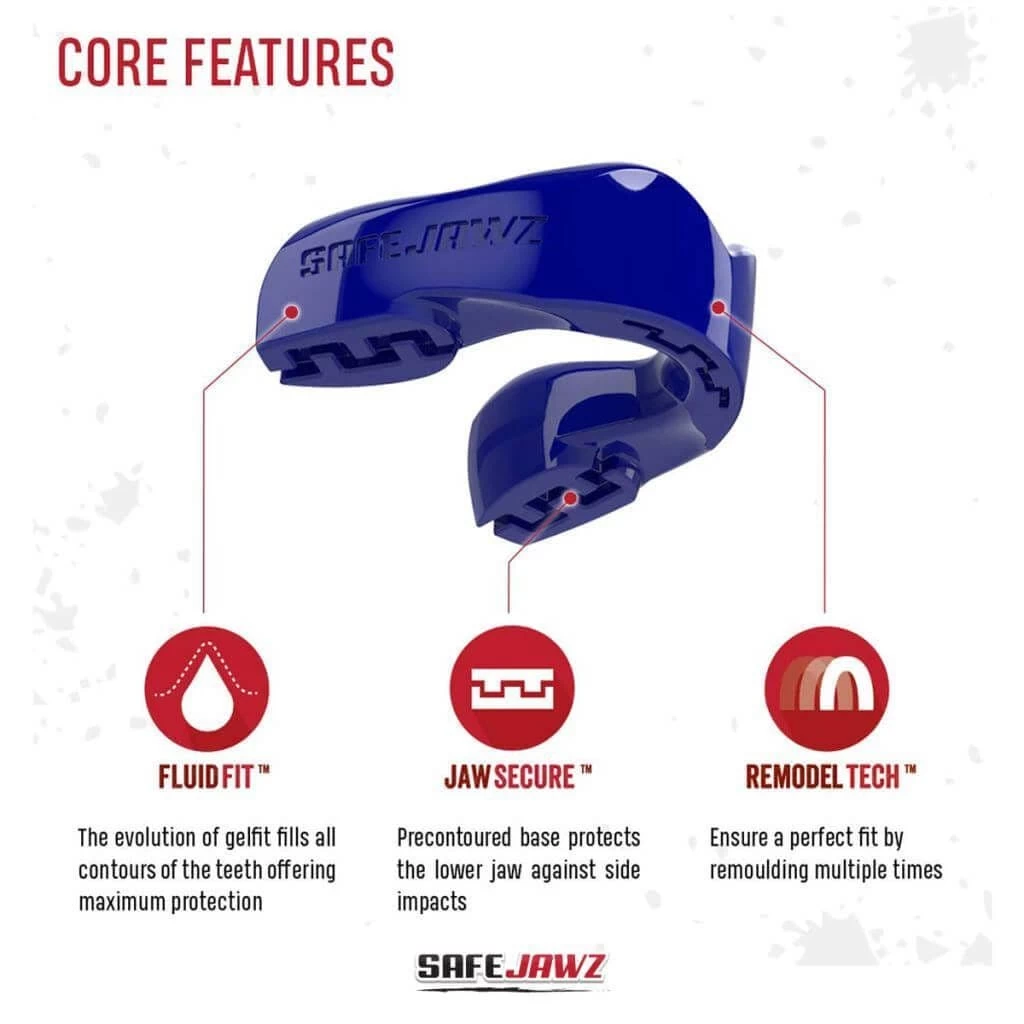 It’s Fluid Fit™ Technology means that SAFEJAWZ® guards feature a super-slim profile and great retentive qualities. The guard will essentially clip onto the teeth & fit comfortably so that breathing, talking and drinking will not be a problem.