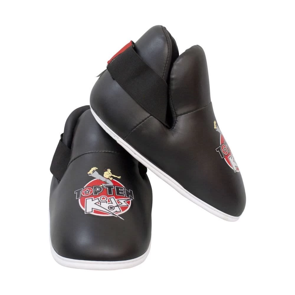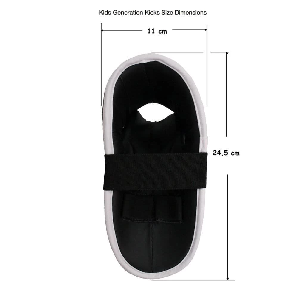The Top Ten Kids Kick foot guard is especially designed for young children. Sizes fit boys and girls aged 5 and over. They are comfortable and durable, and provide great protection. The pre-shaped kicks are padded with soft PPS foam to protect the sensitive foot area from bruises and covered with a smooth surface of washable imitation leather and a reinforced step edge.