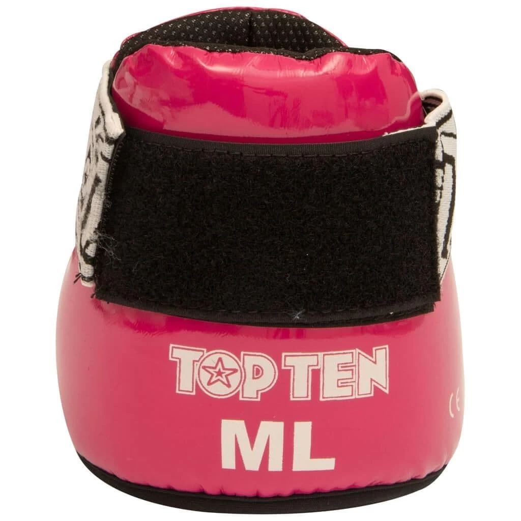 Especially in the martial arts disciplines with a lot of footwork and kicking techniques, like in Taekwon-Do or Kickboxing, you should put a lot of emphasis on the protection of your feet. The most heavily loaded part of the musculoskeletal system is the foot, especially on the top of the metatarsus. Top Ten’s “SuperLight” foot protectors are designed specifically for this area and combine with the latest medical and sports technologies to bring more safety to martial arts. The sturdy synthetic leather case is filled with an already pre-formed PPS foam and offers the athlete excellent damping properties with high energy absorption. For a long shelf life, Top Ten’s bottom edge is reinforced with a black contrast strip.